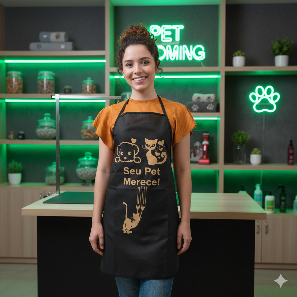 O Avental Impermeável Profissional é ideal para tosadores, pet shops, clínicas veterinárias, cozinhas e uso geral, protegendo suas roupas contra água, sujeira e respingos.