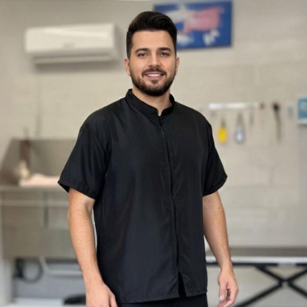 O Jaleco de Tosador Masculino Anti Pelos é ideal para tosadores profissionais que buscam proteção, conforto e praticidade no dia a dia do banho e tosa.