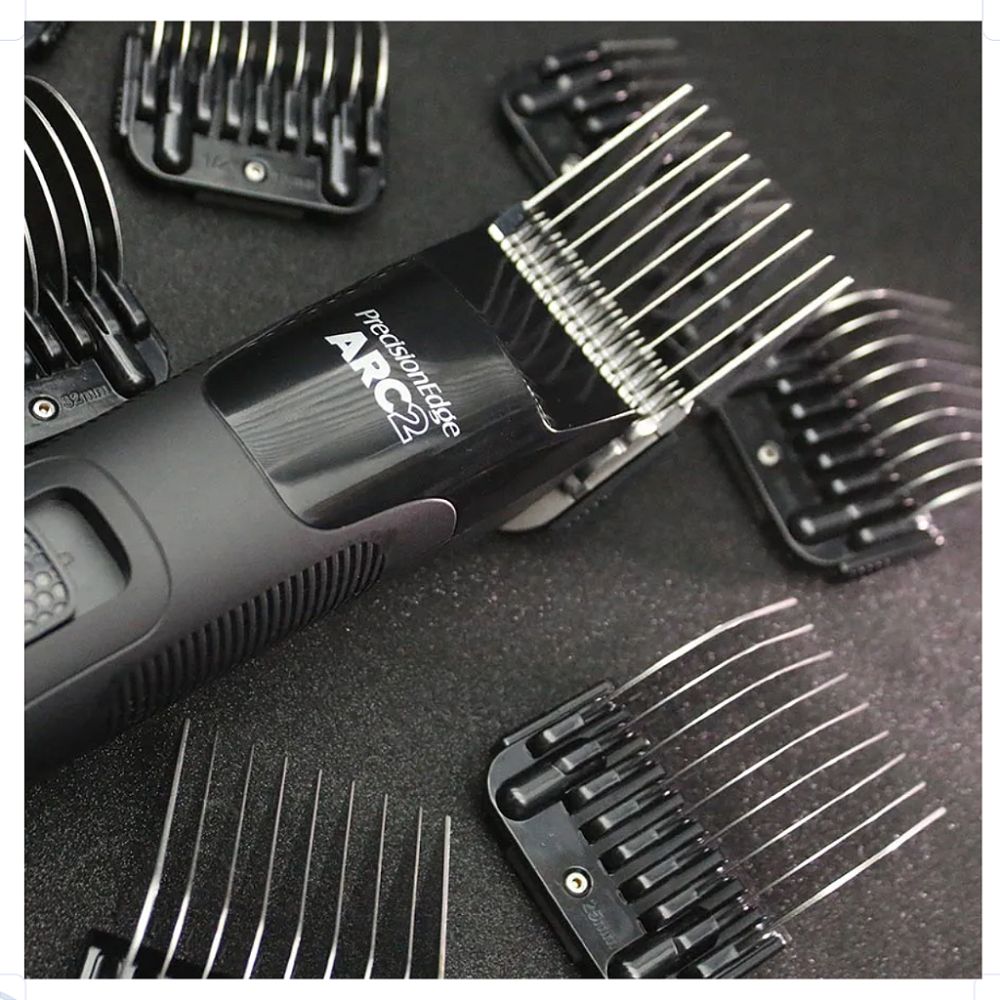 Receba um kit completo e versátil para todos os tipos de corte. A ARC2 acompanha um estojo de armazenamento com 9 pentes adaptadores profissionais de alta qualidade:
